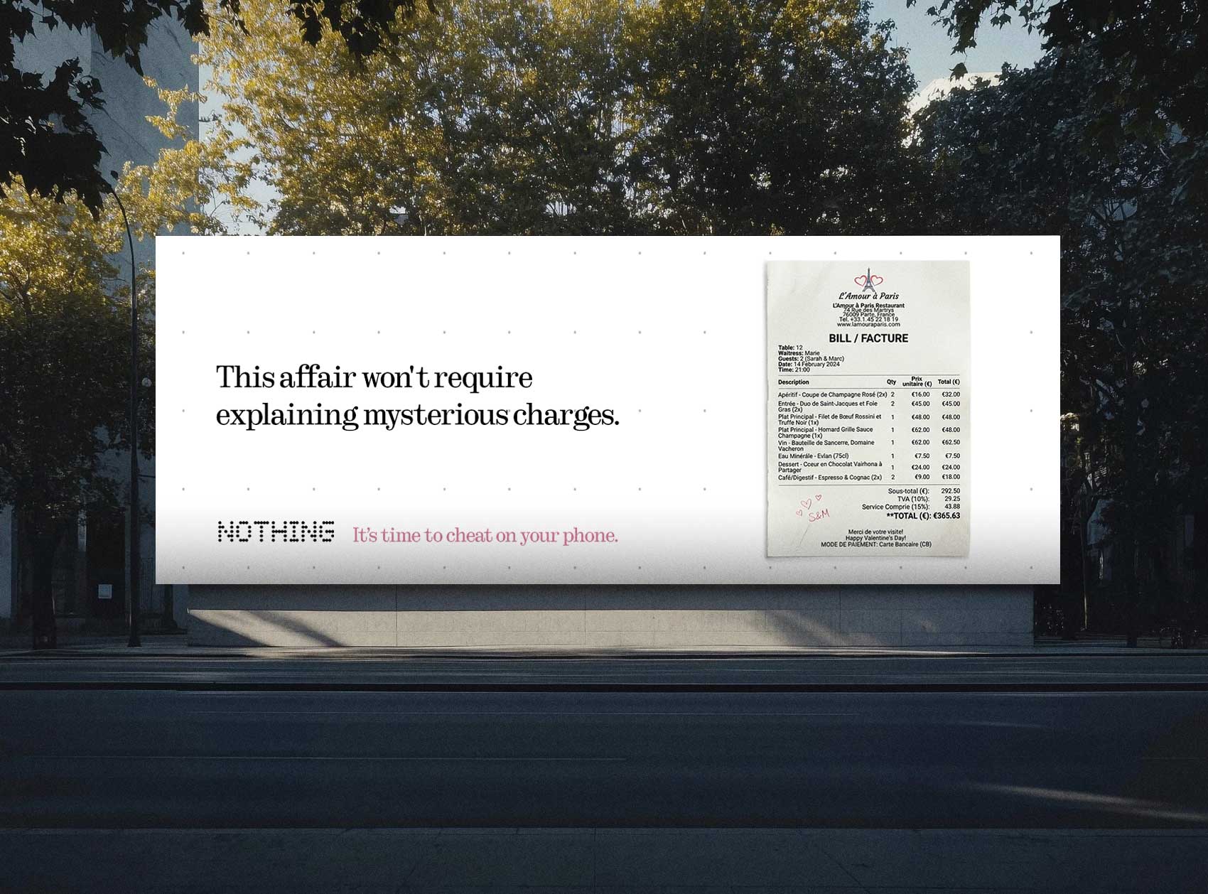 It's time to cheat on your phone. We turned Apple’s highly anticipated event, known for its unmatched market share and loyalty, into a moment of temptation, inviting people to cheat on their phones with Nothing.